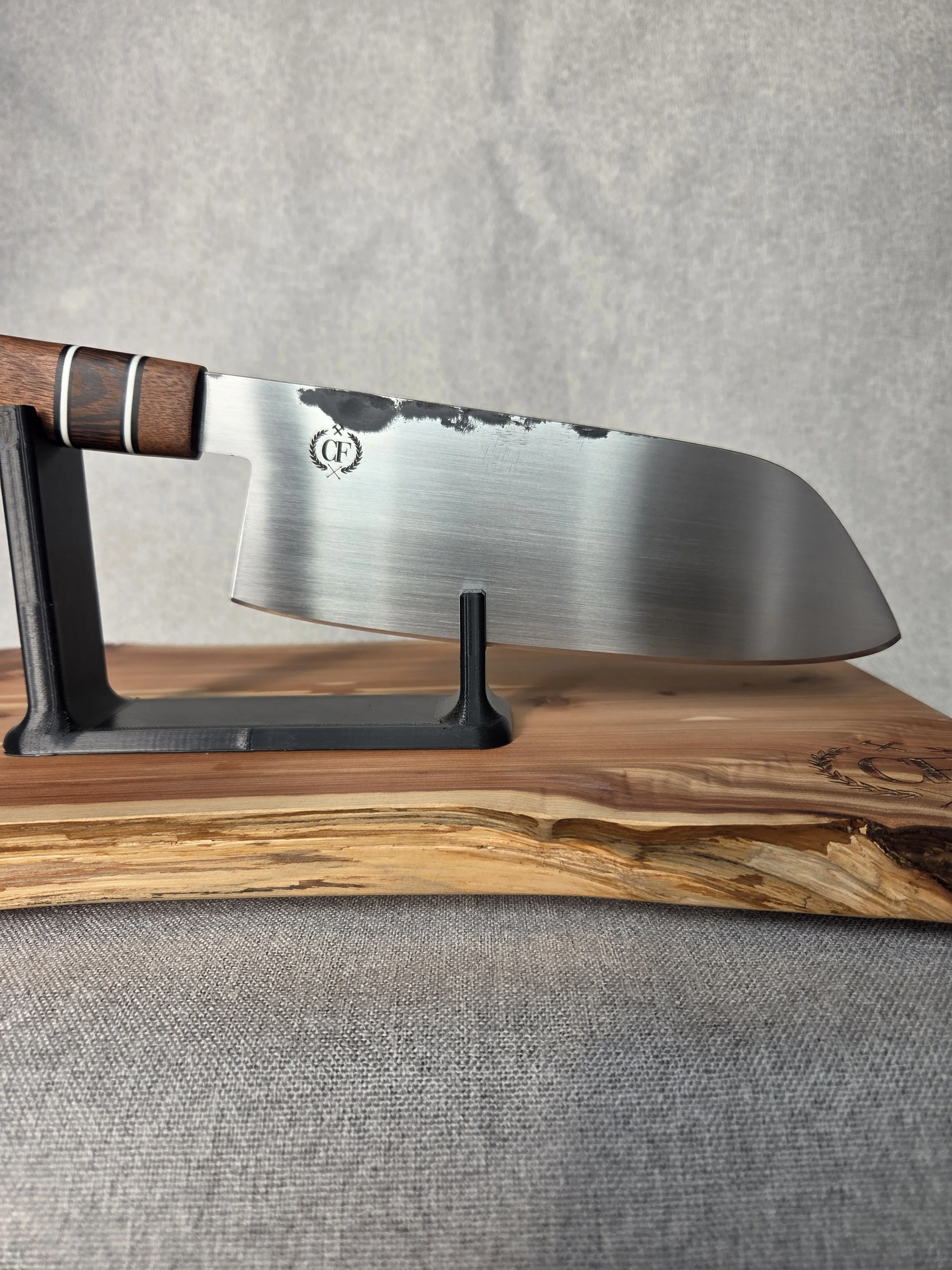 Logo blanc avec les lettres 'CF' au centre, entouré de branches de laurier, avec deux haches croisées en haut et deux flèches croisées en bas, sur fond noir.